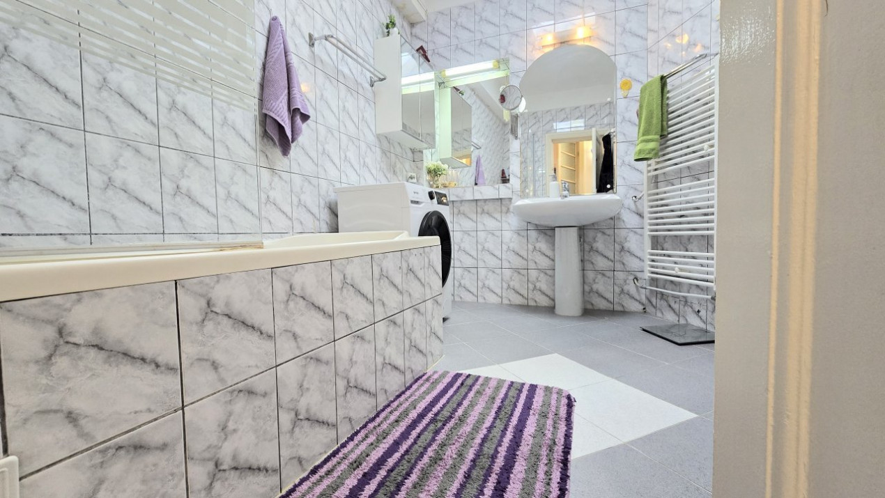 Instalații electrice și sanitare sunt schimbate, la fel și tocăria ferestrelor iar cele două balcoane au fost transformate în spațiu util. Suprafața de 124 mp este generoasă așa încăt, dacă dorești, poți redeschide balconul dinspre grădină.