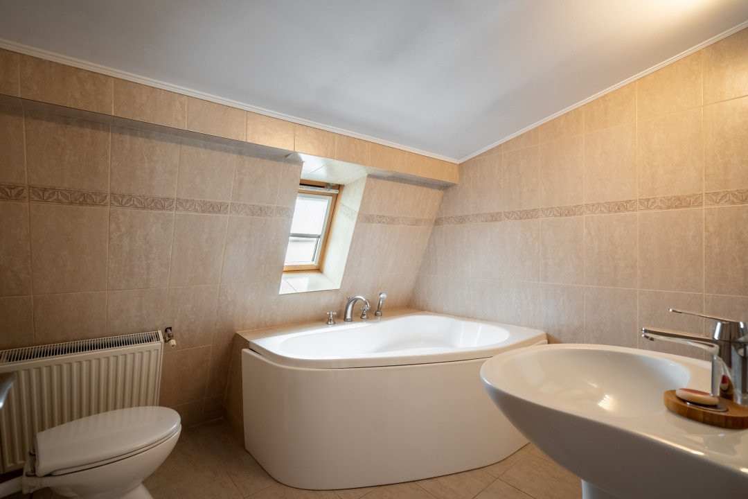 Componenta: Vila este dispusa pe P+E+M, si contine: 12 camere, 3 livinguri, 9 dormitoare, 4 grupuri sanitare, 5 bai, 3 bucatarii, 2 balcoane, 1 terasa acoperita. In curte, beneficiati si de 2 locuri de parcare.