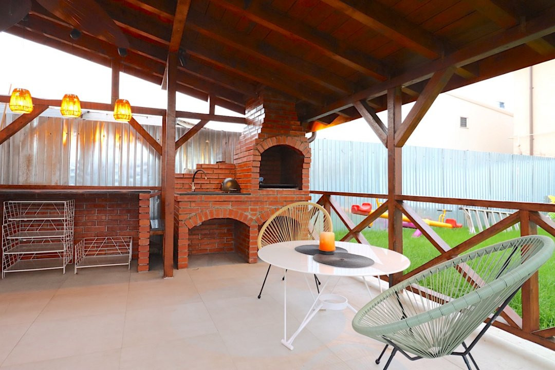 Casa, ce dispune de pod si mansarda, a fost construită în anul 2023 și se vinde complet mobilată și utilată. Compartimentarea este funcțională, oferind 5 camere, 3 bai, 2 bucătării si spații de depozitare, plus 2 terase acoperite, fiecare de câte 25 mp. Proprietatea beneficiază de toate utilitățile necesare (apă, gaz, curent, canalizare), finisaje moderne și mobilier de calitate.